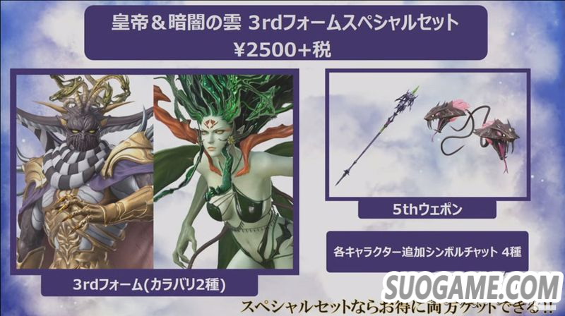 皇帝与暗黑之云的新服装均取自于原版游戏中作为最终BOSS登场时的造型,跟之前的DLC一样拥有三种不同的配色。这些DLC将于北京时间3月5日登陆PS4与PC平台,新服装套装跟以前一样单件售价为1500日元,两个DLC打包购买的价格为2500日元。
