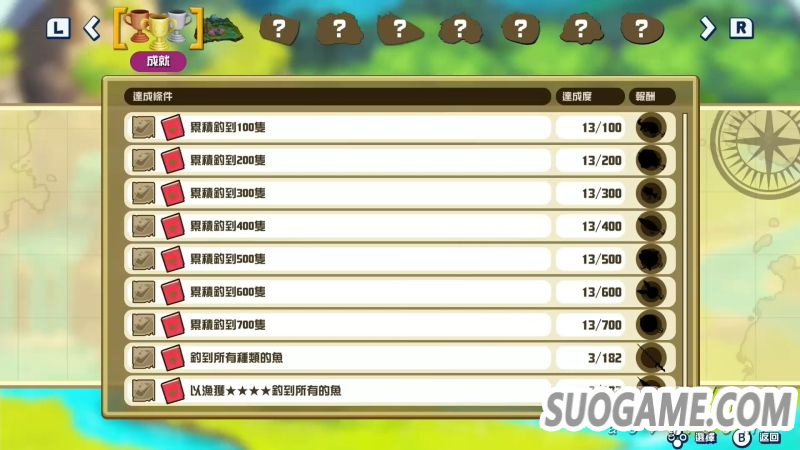 捕获的鱼种将被记录在图鉴中,可以确认自己钓到的所有鱼的种类、大小和重量。根据鱼种的大小和重量分为4个等级,玩家可以钓到更高等级的鱼种来完成图鉴。此外,挑战课题中还准备了各种任务,各地会出现非常罕见的BOSS级鱼种,玩家不仅可以完成图鉴,还能以达成挑战课题为目标,挑战钓鱼。