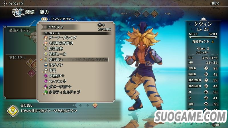 技能是各种对冒险有所帮助的能力,取得后装备即可生效。其中包含强化能力、使战斗更加有利等各种各样。除了可以耗费培养点数获取技能外,也可以通过与角色加深感情获得。另外转职成为上位职业可装备的技能数也会增加。除了本人以外,有些技能也可以让同伴装备。此外部分职业还会有职业固有的技能。