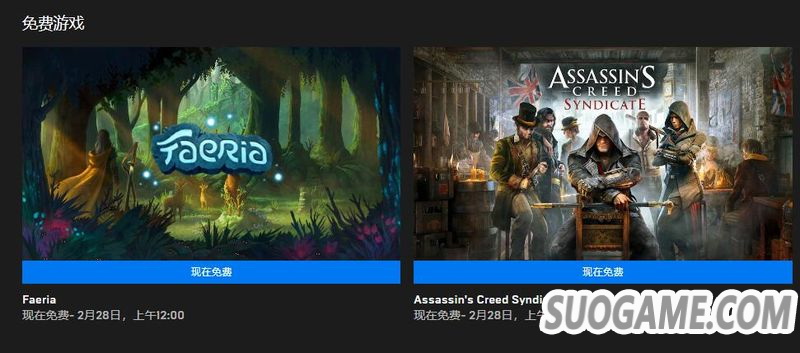 Epic目前可以免费领取卡牌游戏《Faeria》以及动作游戏《刺客信条 枭雄》,《枭雄》国区无法领取,领取时间截止至2月28日。