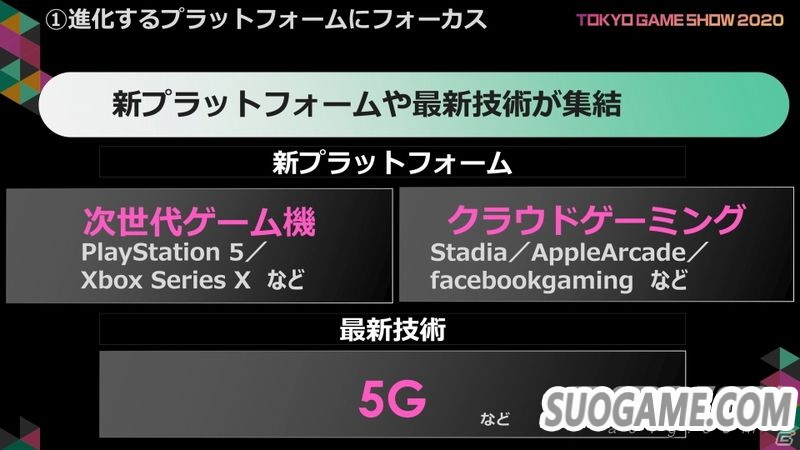 其中今年的一大看点就是新的平台和最新技术在此集结。包含PS5、Xbox Series X等次世代平台、Stadia、AppleArcade、facebookgaming等云游戏平台以及最新的5G通信技术等,都有望在TGS 2020上进行展出。