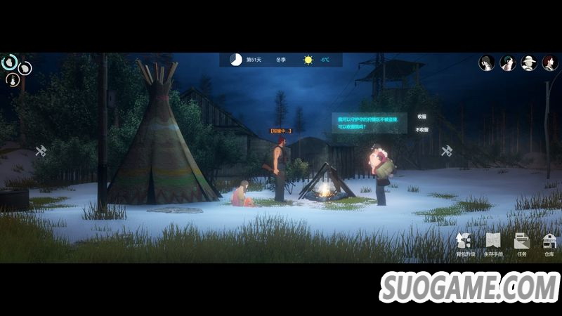 另外游戏开局时可以选择普通、寒冷、炎热、干旱四种模式,5个特性各异的角色,其擅长的求生方式也各不相同。加上环境地貌存在特别大差异的生存区域,理论上可以搭配出将近400种不同的生存策略,加上丰富的随机事件,让玩家在每一次游戏时都能获得不同的求生体验。