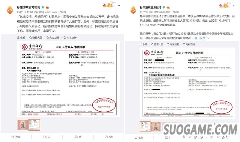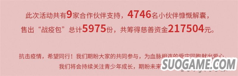 由北京中电博亚科技有限公司发起,在旗下杉果游戏平台举行的慈善义卖活动已在2月19日中午12点结束。活动最终筹得善款217504元,杉果游戏已将善款全额捐赠给中国青基会,支援新型冠状病毒疫情的防控。