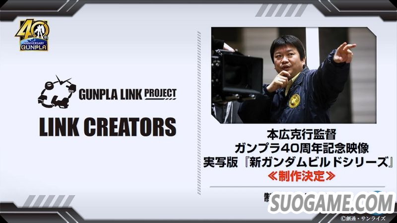 为纪念钢普拉40周年,官方将制作以《高达创形者》为主题的真人版纪念影像,该片将由本广克行担任导演。