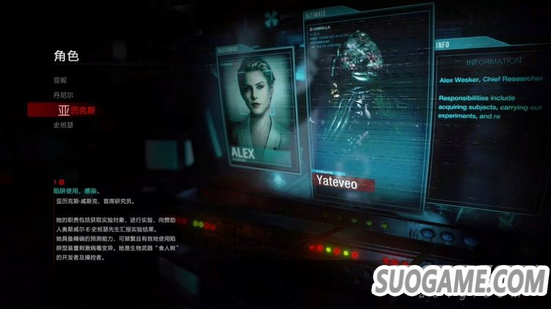 在笔者体验的版本里一共有四名操纵者,大多都是《生化危机》系列里的反派。分别是亚妮?柏金、丹尼尔?法布朗、亚历克斯?威斯克与奥斯维尔?史班瑟。或许比较关注本作消息的玩家已经在事前的宣传中得知操纵者可以操控G-柏金或是暴君,不过操纵者的区别并不仅如此而已。