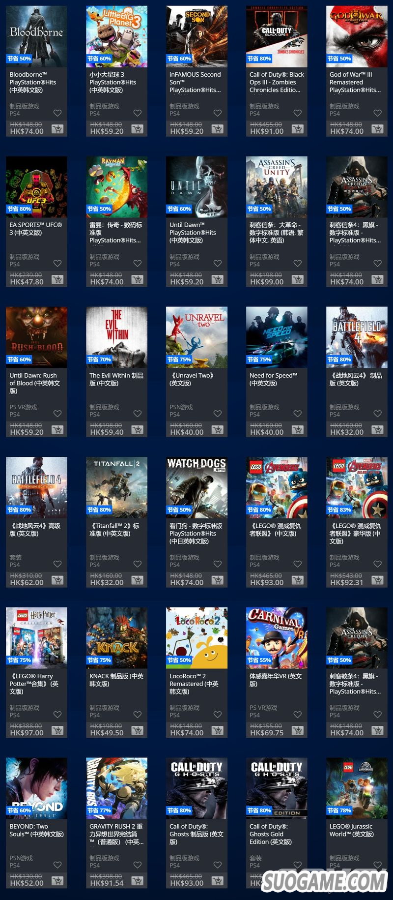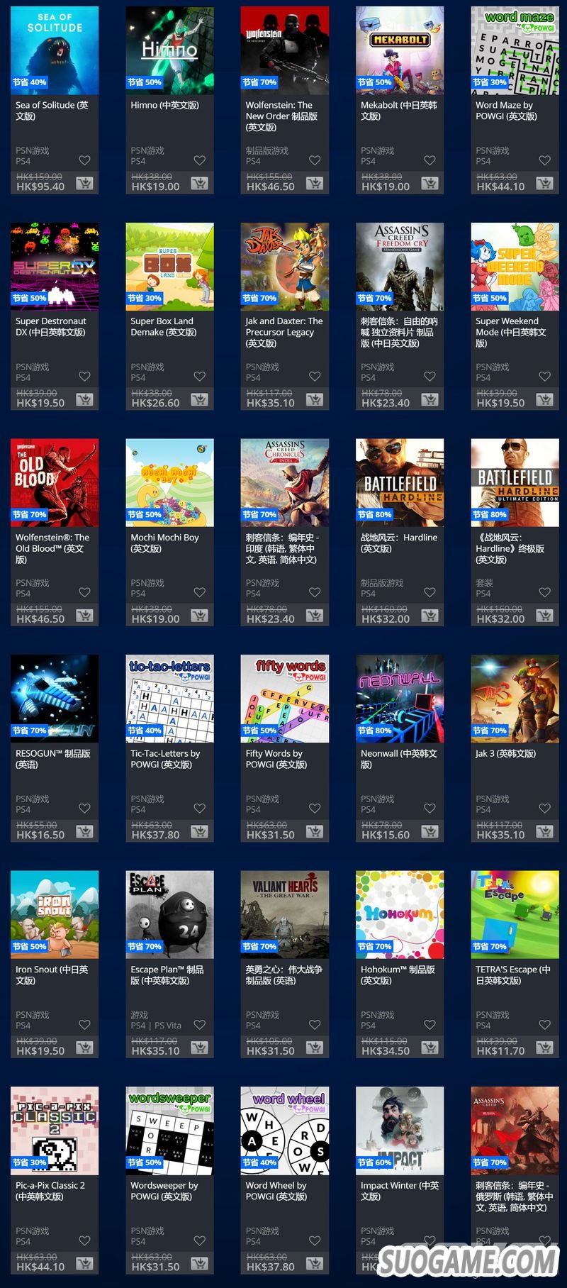 港服PS商店新推出了两组优惠内容,均持续到3月17日结束。(以下配图为全部打折游戏,均显示为非PS+会员折扣)