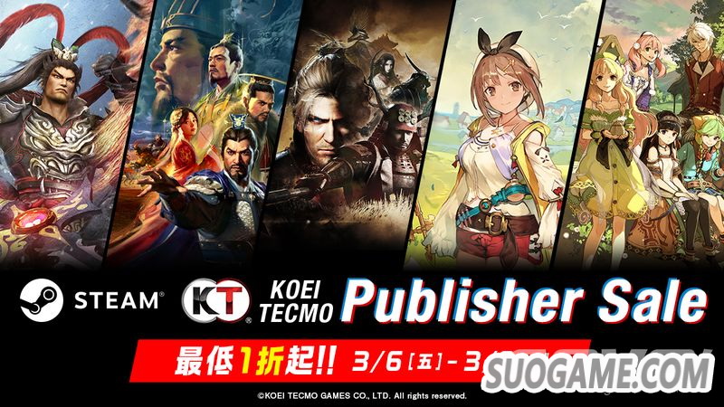 台湾光荣特库摩宣布,「KT Publisher Sale」将于北京时间即日起至2020年3月10日(二)上午1点举行,玩家将可用最低1折的优惠价格购买Steam平台上推出的光荣特库摩多款人气作品。
