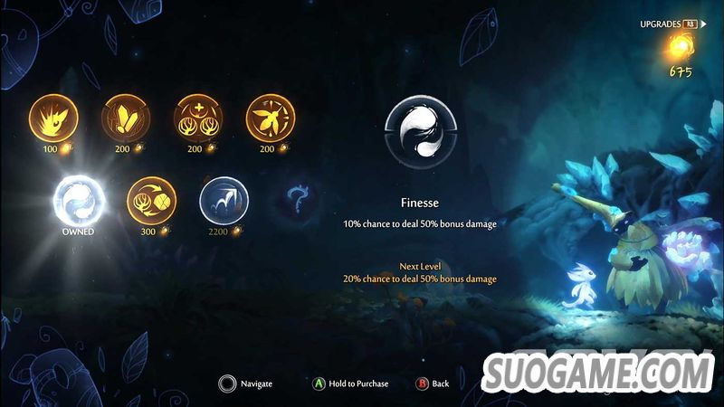 Thomas Mahler:对于我们而言,保留《精灵与森林》中玩家喜爱的元素,在开发过程中至关重要。而游戏的难度和随之而来的挑战,也恰巧是这些元素之一。同时,保留游戏难度和让更多人能够喜欢这款游戏这两点又不是互斥的。全新的 “shard/碎片”系统就是一个例子,玩家在游戏中可以随时装备不同的“碎片”来提升行动或战斗相关的能力。所以,玩家可以通过装备不同的“碎片”来改变游戏的难度,当然了也可以选择什么“碎片”都不装备,游戏中还有一个相关的成就,高手们可以在不使用任何“碎片”通关之后解锁这个成就。我们认为在《精灵与萤火意志》中的游戏难度还是可以接受的,举个例子,我们移除了“灵魂链”系统而改为自动存档系统。这样如果玩家如果在忘记存档后游戏失败就不用因为大量进度丢失而沮丧。同时,玩家如果觉得需要更多时间进行升级,则可以选择跳过部分“escape”关卡和Boss战,晚些再进行挑战。总体而言,《精灵与萤火意志》将通过更多样化得机制帮助玩家来改变游戏的难度,我们也非常期待玩家的反馈。