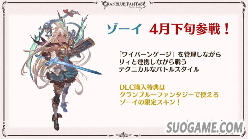 索利兹和姬塔预定于4月上旬登场,而佐伊将于北京时间4月下旬参战,附带特典为《碧蓝幻想》的皮肤。