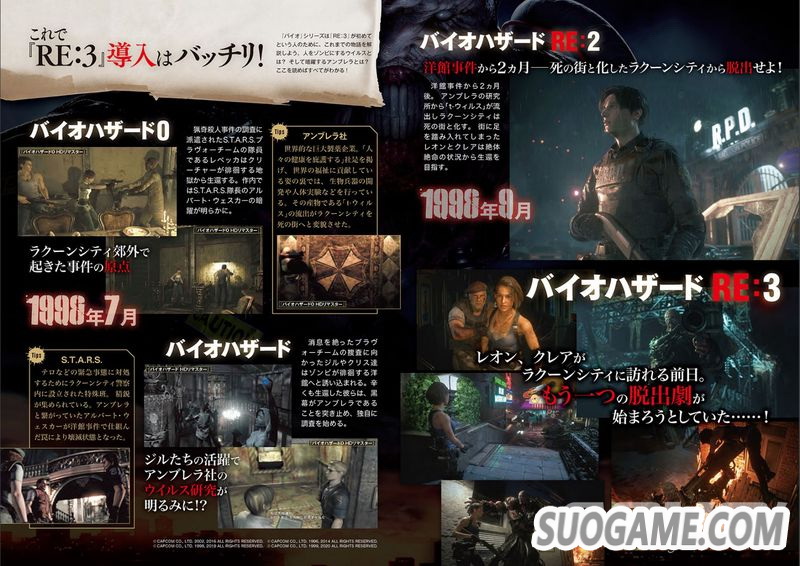 CAPCOM今日在官网上公开了一份《生化危机3 重制版》和《生化危机 抵抗》的PDF游戏介绍档案,比较详细地汇总了游戏的基本内容与登场角色等内容。本作将于北京时间4月3日登陆PS4、Xbox One、PC平台。