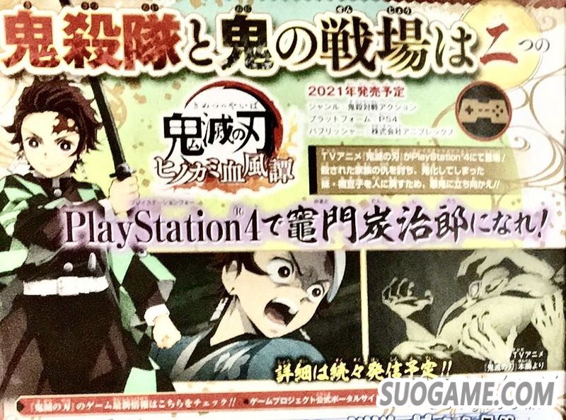 据速报消息,《鬼灭之刃》将游戏化登陆PS4平台。游戏版名为《鬼灭之刃 火神血风谭》,类型为鬼灭对战动作类,预定于2021年发售,发行商为ANIPLEX,开发商未知。游戏版将再现原作的故事剧情,玩家将能够扮演炭治郎。