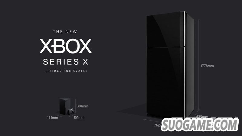 Xbox Series X的尺寸:151mm x 151mm x 301mm,附与冰箱的对比图: