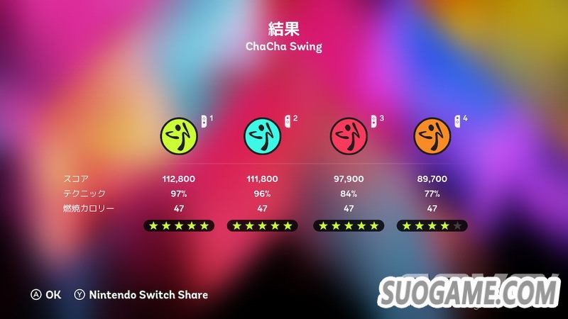 完成每天设定的目标(例如「游戏分鐘数」、「燃烧热量」等等)或每次舞蹈结束后都能获得「健身点数」,可用来提升健身等级。