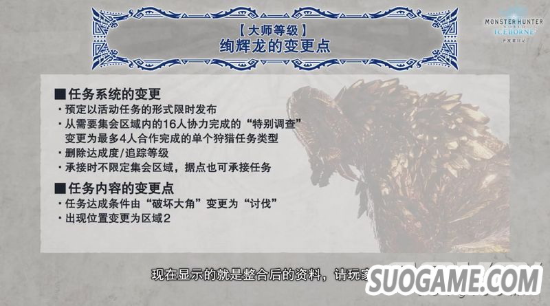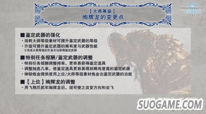 《怪物猎人世界 Iceborne》公开部分后续更新内容,绚辉龙将以Master等级登场。溟波龙也将要在后续更新中以“历战王”的形式登场。