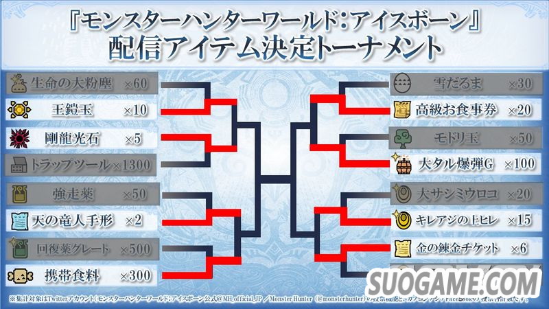 CAPCOM于此前举办的《怪物猎人世界 Iceborne》道具“总选举”今天公开了第一波8强投票结果,(王铠玉、刚龙光石、天之龙人票、随身食物、高级餐券、大爆弹桶G、坚硬竹筴鱼的上鳍、金之炼金票)进入下一轮比拼,最终获得4强的道具将要在4月中旬发放。