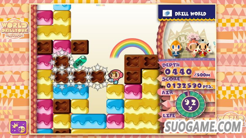 玩家将化身为菁英爆钻工,需一边取得空气胶囊一边闪躲落石,朝向地底最深处前进!