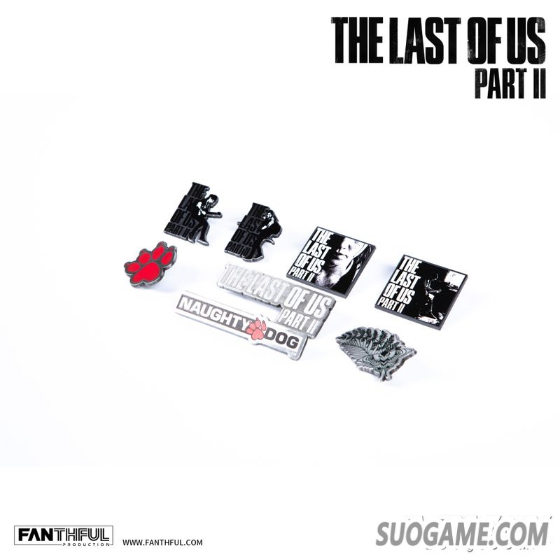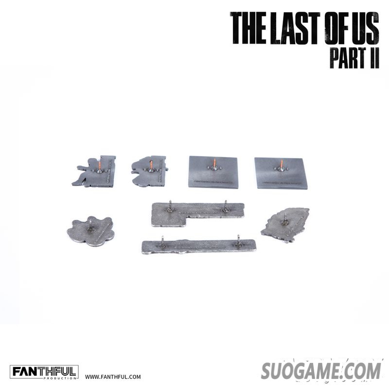 均匀的分色和成熟的技艺,八合一徽章套装,全方位满足粉丝的各类需求从艾莉右臂纹身到人物全身像,从游戏标题到制作公司,格局由小至大,包含八款徽章: