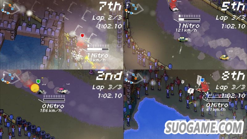 《Super Pixel Racers(超级像素赛车)》是以点阵图吸引目光的竞速类游戏。本款采用俯视式的镜头与轻快节奏的16位元音乐。