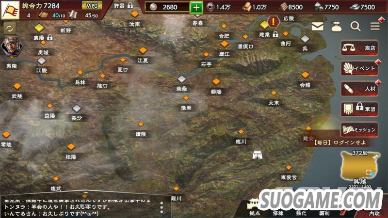 游戏给出了一个大致的目标就是统一天下,但所有人都在这么一张大地图上,统一恐怕并不现实。大部分玩家初期会被随机安排在地图边缘,你可以通过迁都来搬家。靠近洛阳的中部地区会有更高级的资源点,不过周围的贼寇实力也会更强。不断地发展,然后从新手区不断往核心区移动大概是这个游戏的一个中长期战略推进方式。