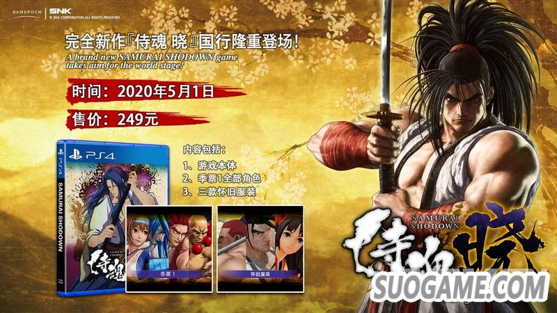 星游纪宣布格斗游戏《侍魂 晓》PS4国行版将于北京时间5月1日发售,定价249元。购买游戏可直接获得其它版本的收费DLC季票1(包含莉姆露露、破沙罗、风间火月、王虎4名追加角色)以及3个怀旧皮肤。