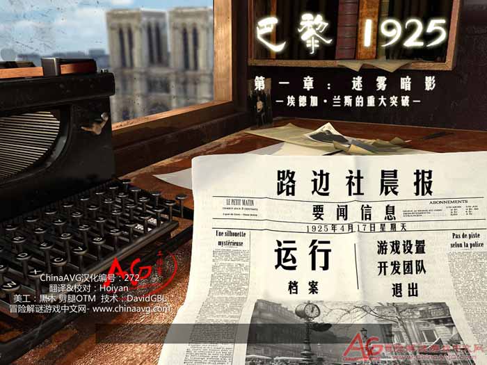 在他着手第一份报告的时候,新闻工作者埃德加-兰斯无意中卷进了一场神秘的谋杀案中,给他带来了一场冒险的调查。在咆哮的20世纪在纵横交错的巴黎里穿行,从凯旋门到埃菲尔铁塔,就在这座世界最美丽的城市中破解这个制造混沌且难以捉摸的阴谋。你能抓住这条头条新闻吗?就在《巴黎1925》中找出答案吧!